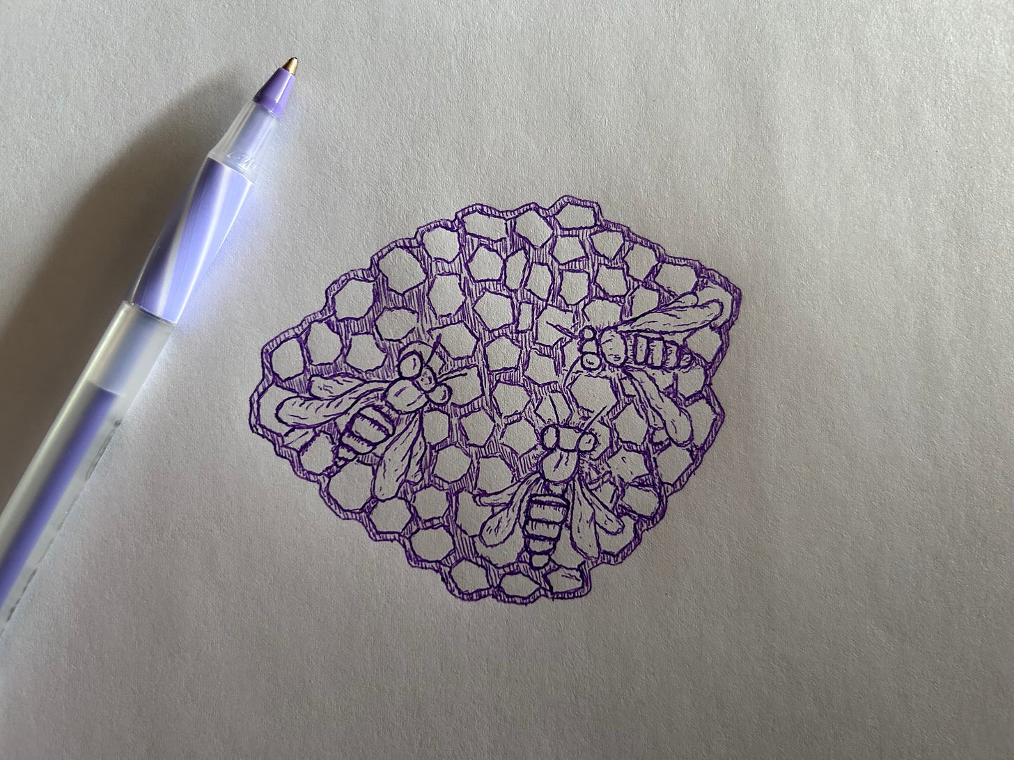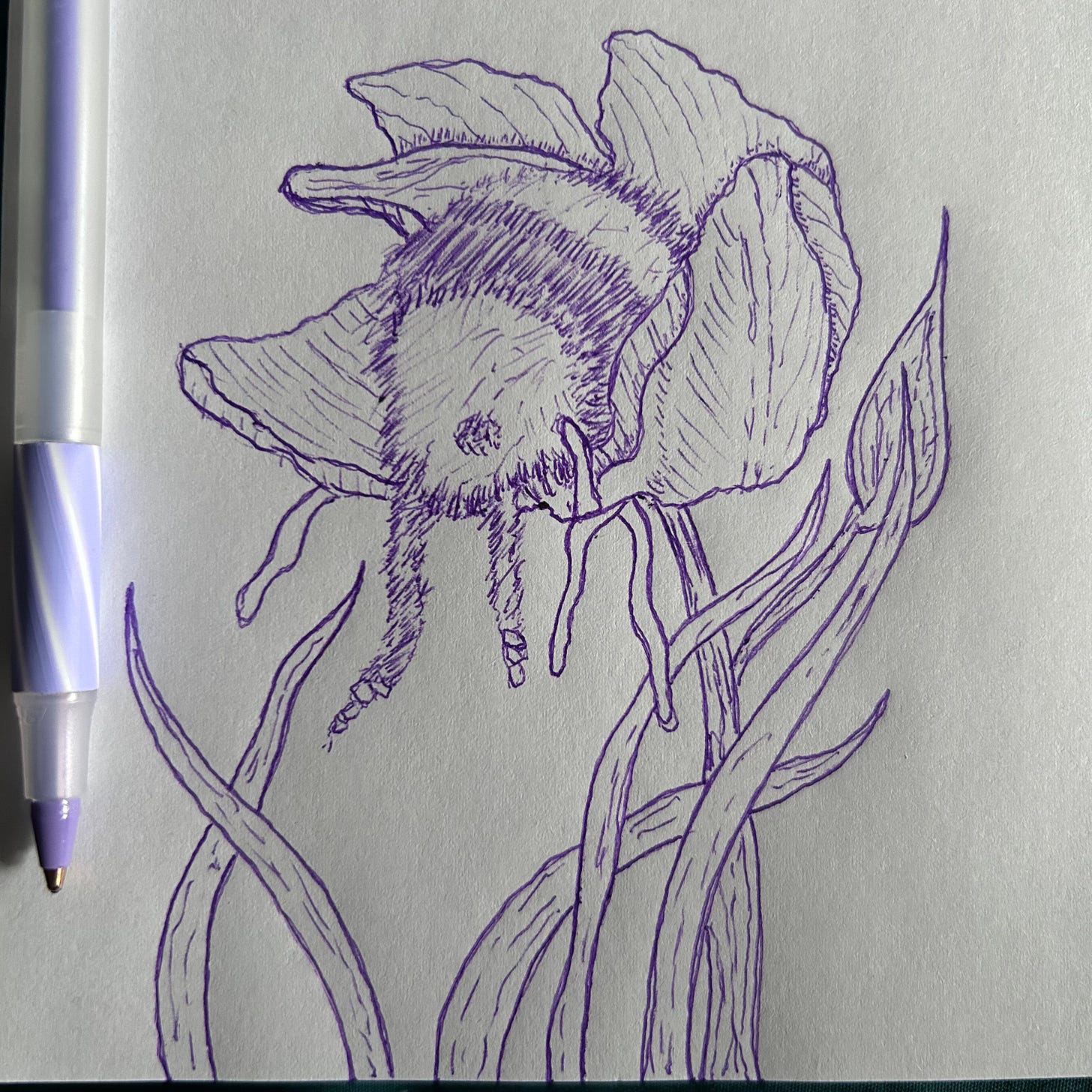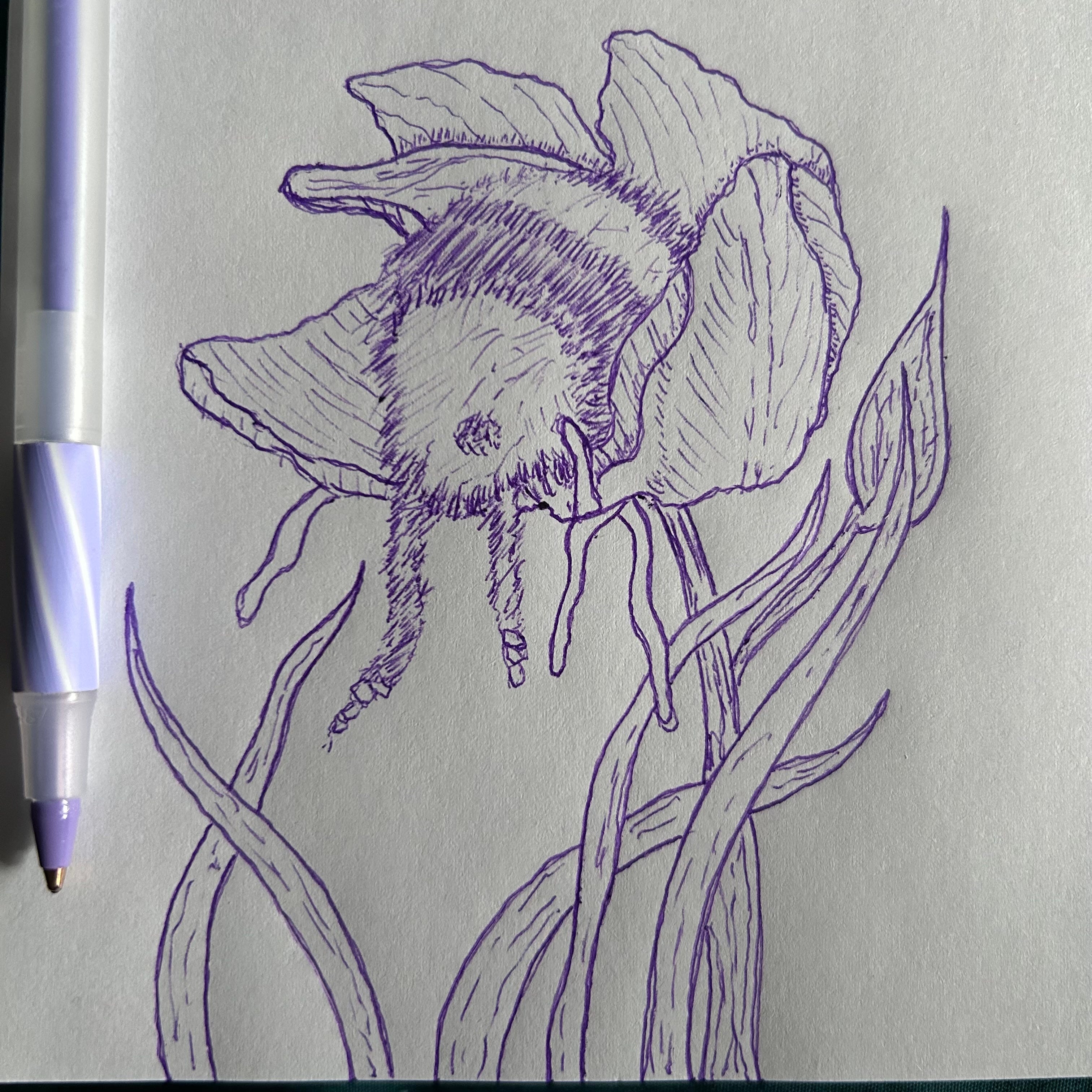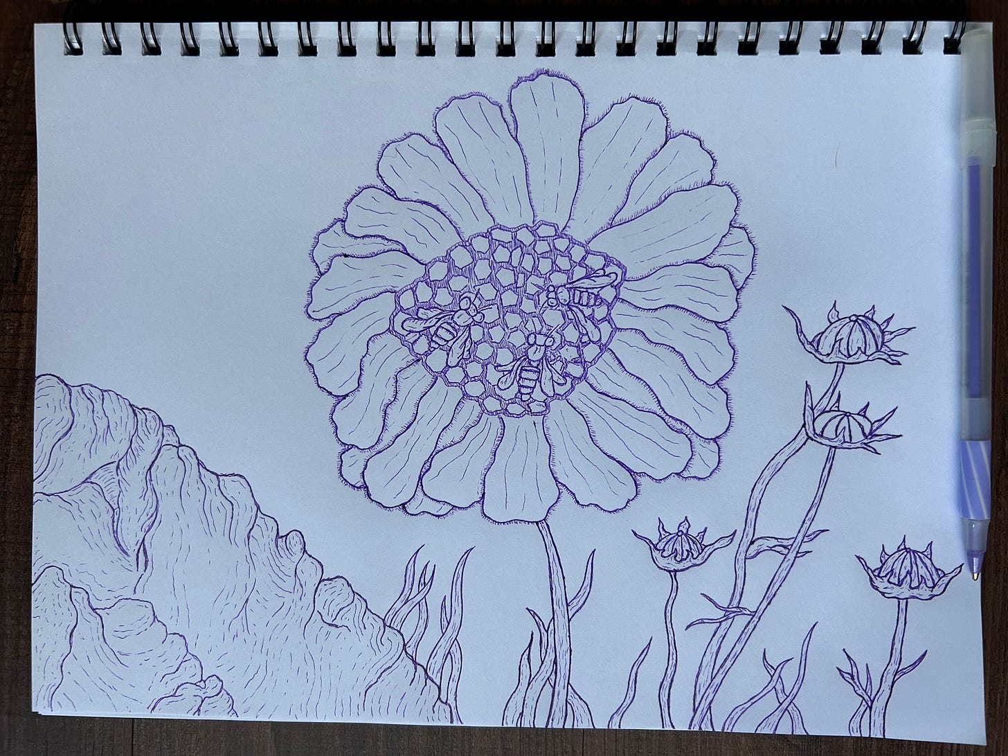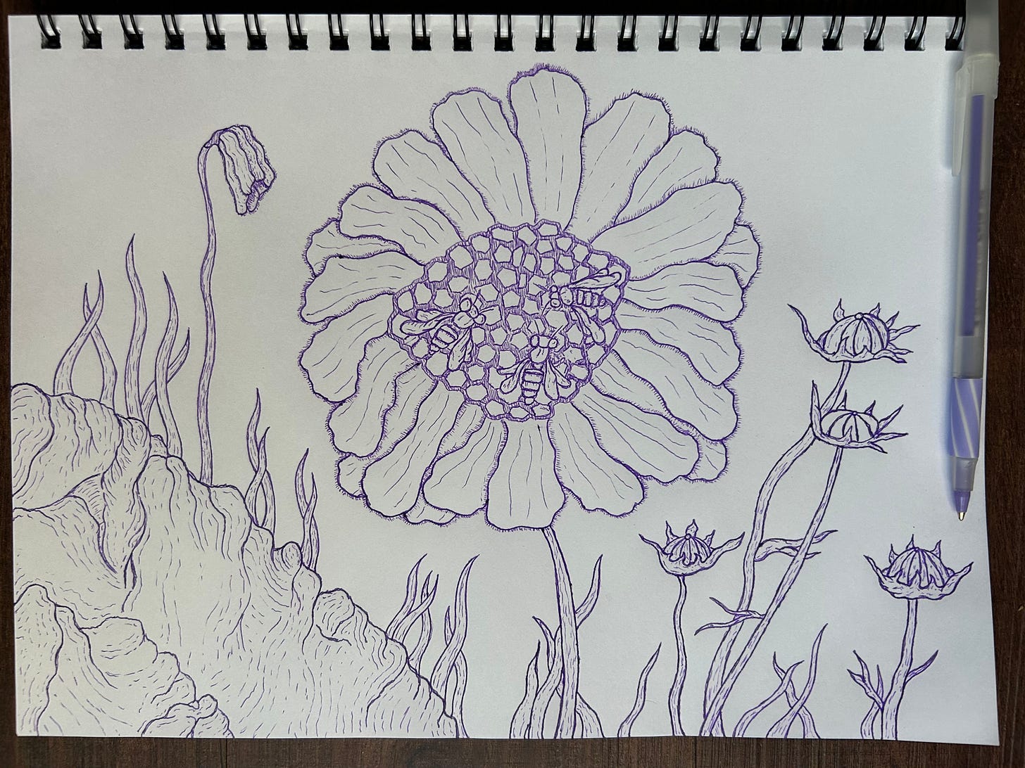 April 8, 9, 10 | Flower and Hive 8.5”x12” pen and ink