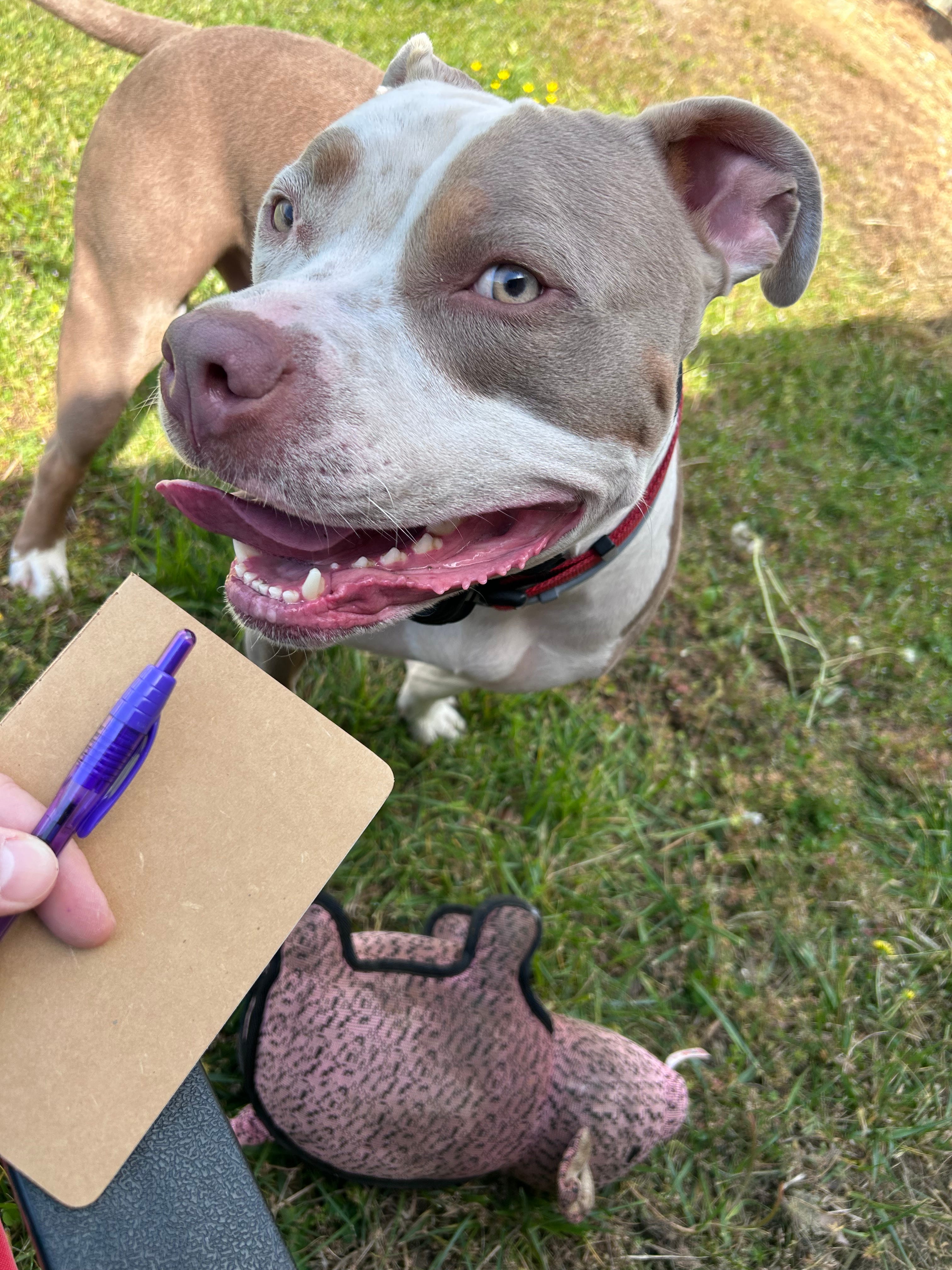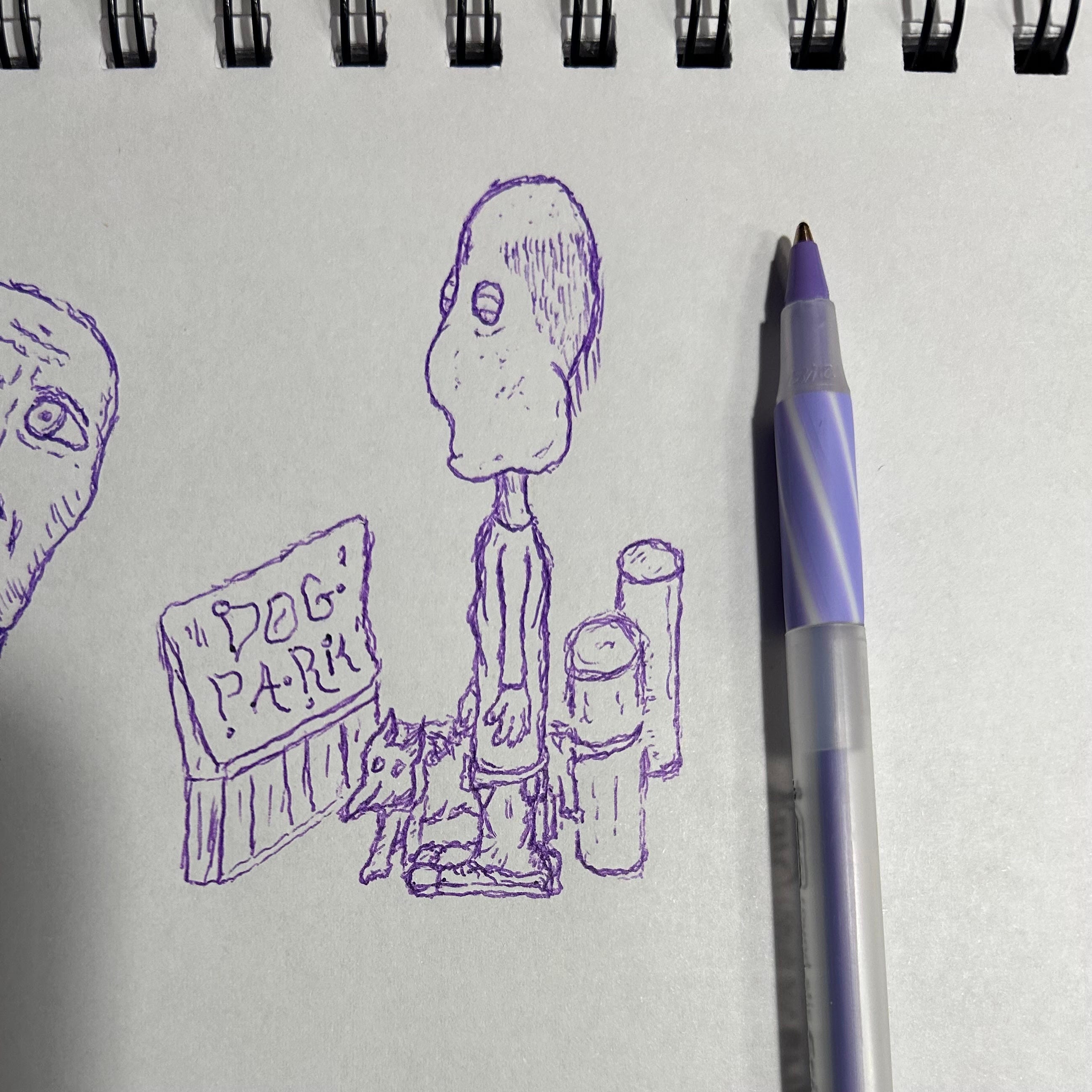Playing catch with the pup and scratching some ink on the page while he stops to catch his breath. Together, we managed to work through the first page on our lunch break.